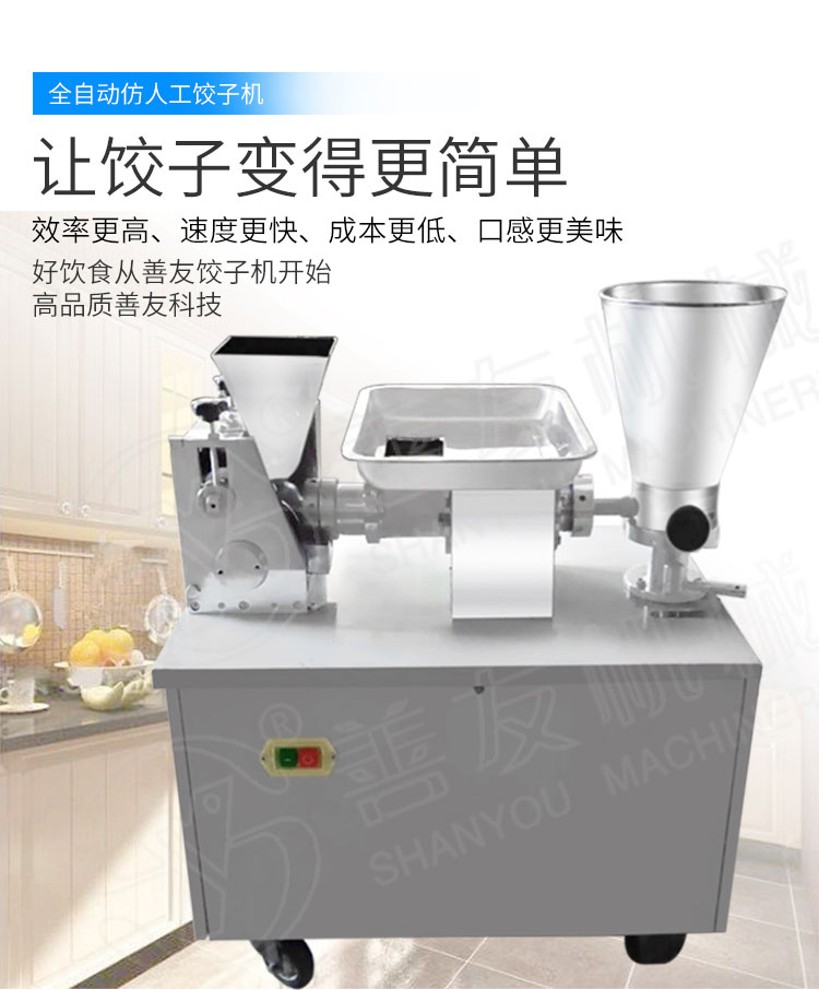 JZJ系列饺子自动成型机,本机适用于宾馆、饭店、餐厅、团体食堂加工、幼儿园、速冻饺子生产。各种肉馅、肉菜混合馅、全菜馅及其它种馅的饺子。
